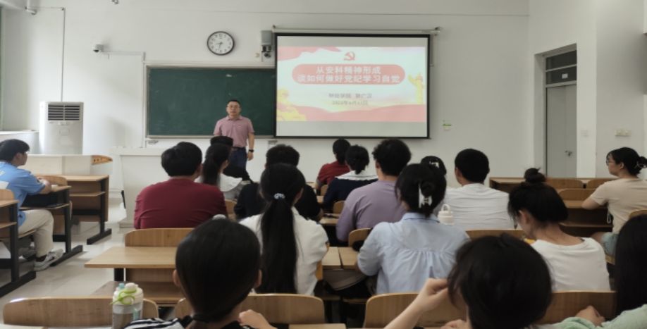 耿广汉以“从安科精神形成,谈如何做好党纪学习教育自觉”为题,结合自身学习体会、工作感悟、校史研读、校友反馈和岗位实际,回顾了我校“不容易、不简单”的跨越式发展进程,剖析了“安科精神”孕育成长与成熟的逻辑脉络,解读了安科师生尤其是党员在“安科精神”形成中的关键作用,指出新时代学生党员要珍惜学校发展成果、努力传承安科精神、在工作中创先争优、在党纪学习教育中率先垂范。