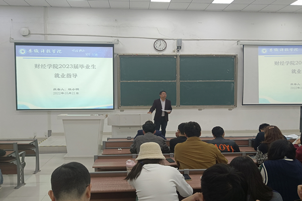 为有效推进2023届毕业生充分就业、高质量就业,确保毕业生就业工作有序开展,10月21日晚,财经学院在致知楼C111召开2023届毕业生就业指导报告会,报告会由学院党委书记杜小明主讲,学院辅导员、2023届毕业生等出席会议。会议由学院专职辅导员朱中军主持。