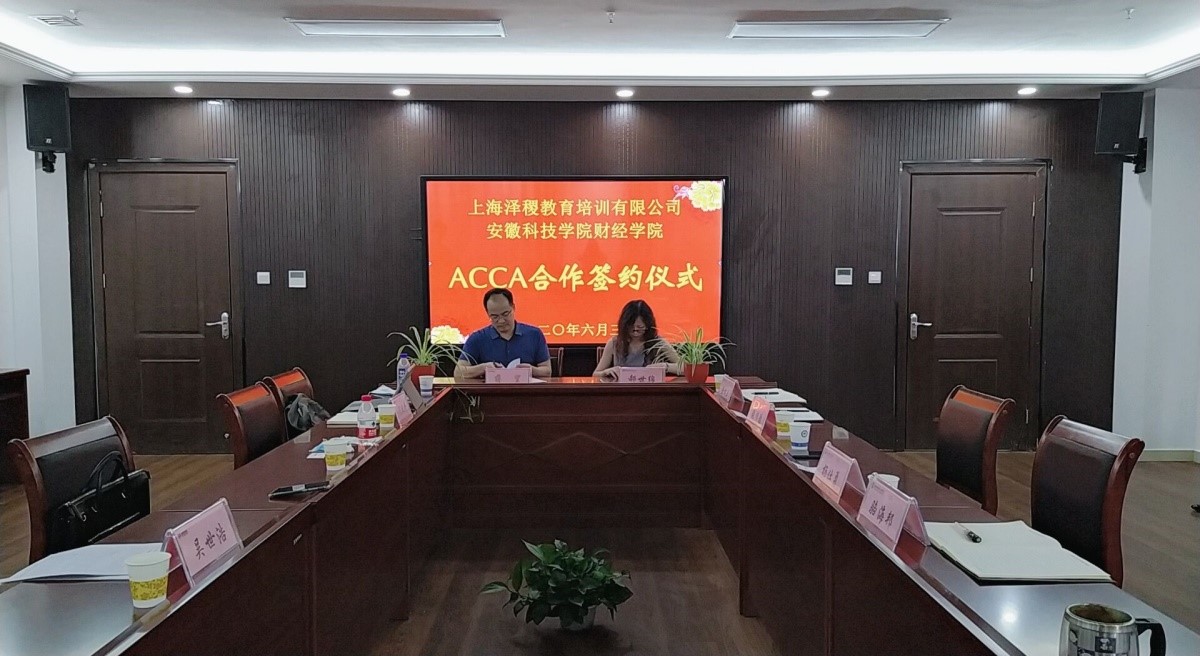 6月3日,财经学院与上海泽稷教育培训有限公司在龙湖校区综合信息中心225会议室举行ACCA方向班合作签约仪式。我校创新创业教育学院院长杨仕勇,财经学院党政领导,上海泽稷教育培训有限公司董事长蒋望等出席了此次签约仪式,仪式由财经学院副院长郝世绵主持。