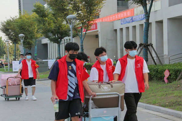 财经学院84名学生党员组成“党员工作站”为报到新生提供全方位服务。报到当天,从早上6:30到晚上22:00,身披红色马甲的学生党员忙碌在每个需要的角落:主动接过沉甸甸的行李箱、引导新生办理入学手续、耐心解答新生疑惑、陪伴新生去宿舍,贴心的服务、热情的笑容温暖着每位新生。学院组织员李永生勉励学生党员:要深刻领会“亮身份、树形象、做表率”的意义,充分发挥学院党员工作站作用,让新生感受到党组织的关怀和党员的热情,为新生树立榜样。