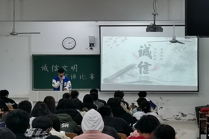 此次主题演讲比赛的成功举办,增强了青年大学生的诚信文明意识,营造了"知文明,讲诚信"的良好氛围。(特约通讯员:朱中军 摄影:柏孝宇 审核:耿广汉)