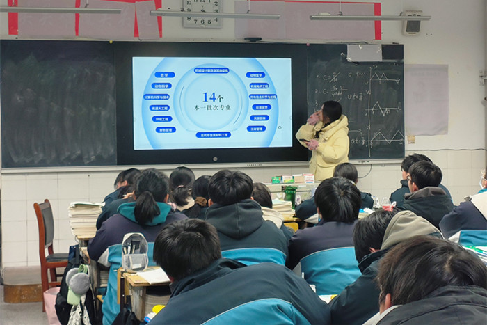 活动中,队长方汝佳向高三的学弟学妹们通过PPT和视频的方式宣传安徽科技学院,详细介绍了学校的办学历史、部分专业一本批次招生资格及学校校区建设、师资力量等情况,就大学期间的学习生活、社团活动、校园环境、宿舍环境和管理制度、专业特色、考研情况和就业情况等与学弟学妹们进行详细地交流和解答。预祝学弟学妹们在高考中稳定发挥,取得优异成绩,同时也表达了在安科等待学弟学妹们的美好期盼,学弟学妹们也对安徽科技学院表现出了浓厚兴趣。