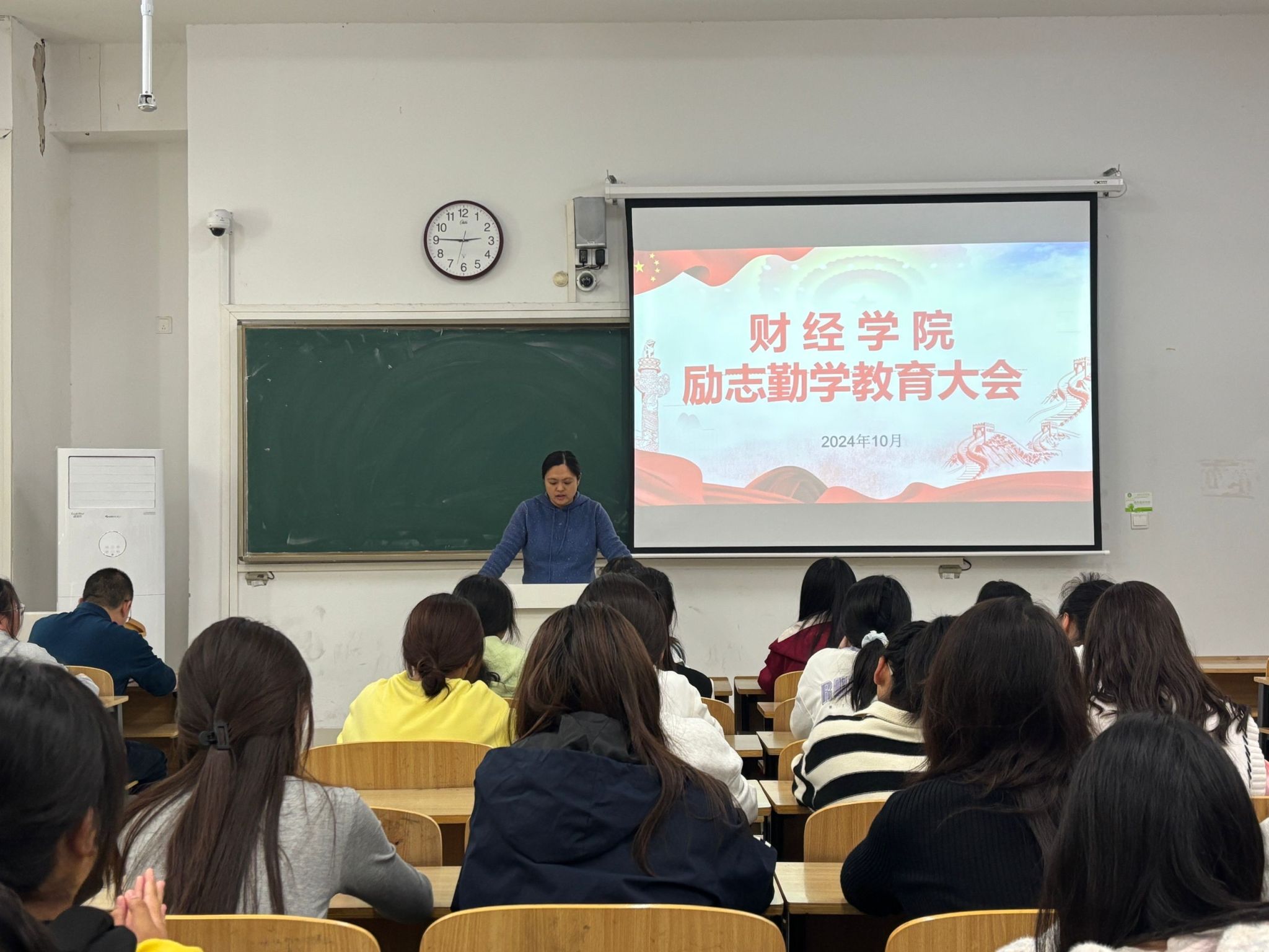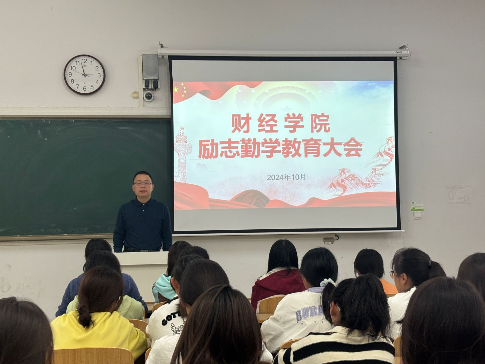 为激励受资助学生励志成才、勤奋学习,发挥国家助学金育人成效,10月9日,财经学院在致知楼C109教室开展受资助学生励志勤学教育大会。学院党委副书记、纪委书记耿广汉以及2024级全体受资助学生参加了会议。国家励志奖学金获得者刘文倩、黄一尊做了精彩分享。会议由专职辅导员宣晶晶主持。