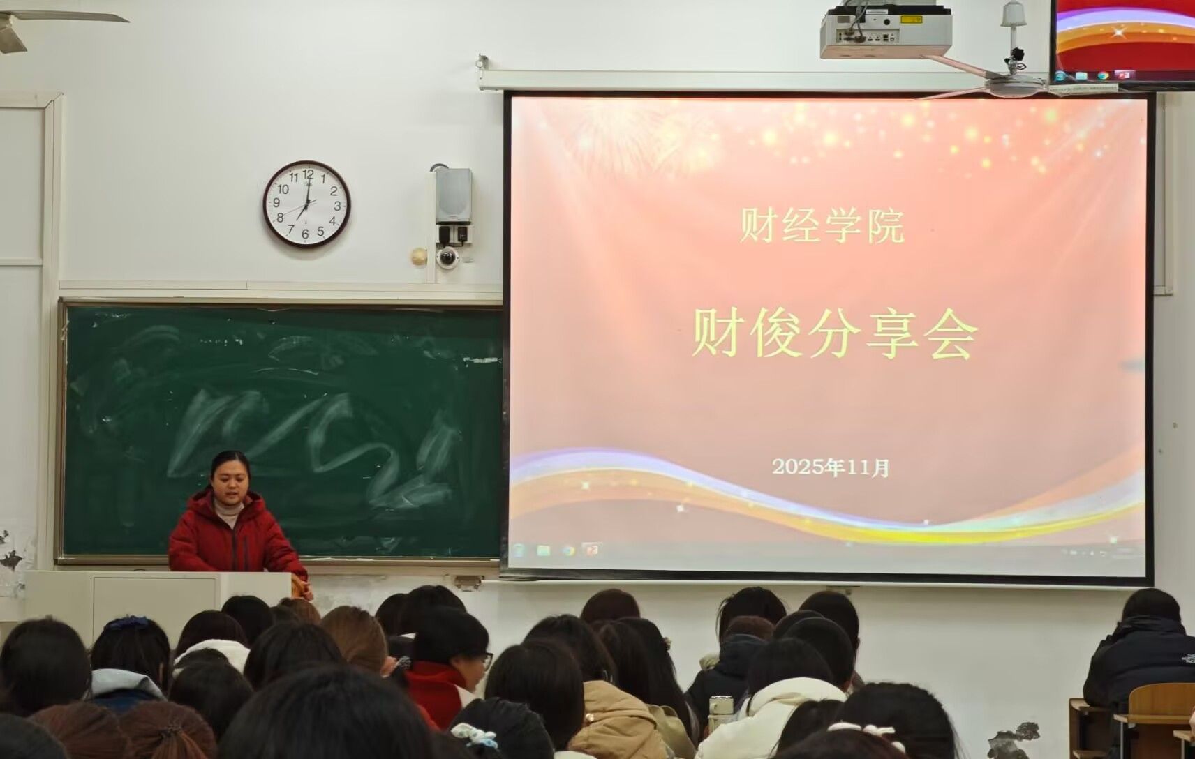 为进一步加强学院学风建设,充分发挥榜样引领示范作用,11月22日-11月24日,财经学院分专业举办三场“榜样赋能青春”财俊分享会。会议由专职辅导员宣晶晶主持,全体2025级新生参加。