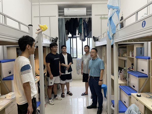 走访中,学院领导与返校学生进行了亲切交流,了解学生暑假学习生活情况,提醒学生要给父母报平安,返校后切实做好疫情防控常态化工作,进一步提高安全防范意识;注意用电安全、交通安全、个人财产安全等安全事项;鼓励学生们新学期要珍惜青春时光,合理规划大学生活,提高自律与独立生活能力,互助友爱,勤奋学习,学好专业课,为考研提前做准备,同时提醒学生们要注意身体健康,加强锻炼,努力改善宿舍卫生。