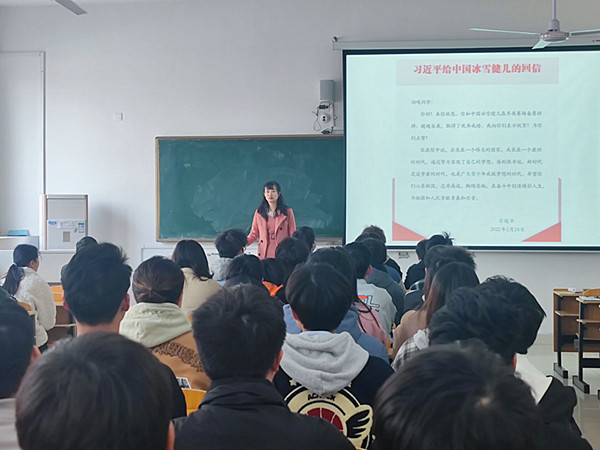 各班级认真学习了习近平总书记给中国冰雪健儿回信全文,体悟习近平总书记对新时代中国青年的殷切期望。同学们纷纷表示,将以中国冰雪健儿为榜样,勤奋学习,刻苦钻研,在自己的专业领域练就过硬本领;树立与时代同心同向的远大理想和崇高信念,把个人的成长成才梦融入中华民族伟大复兴的中国梦中,努力成为担当民族复兴大任的新时代大学生。