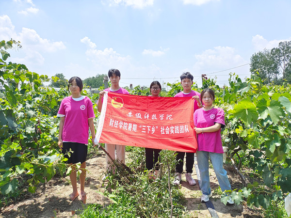 随后,队员们又实地走访了魏庄社区自营农场,参观了农场的葡萄园,帮助农民为新成熟的葡萄套上袋子,以防鸟禽啄食。实践团队中来自安徽科技学院农学院的丁凤和王皓两位同学,带领团队和农场工作人员将滴灌灌溉技术、绿色有机肥技术和畜禽粪资源化技术应用在农场种植中,受到了社区农场管理人员的一致好评。