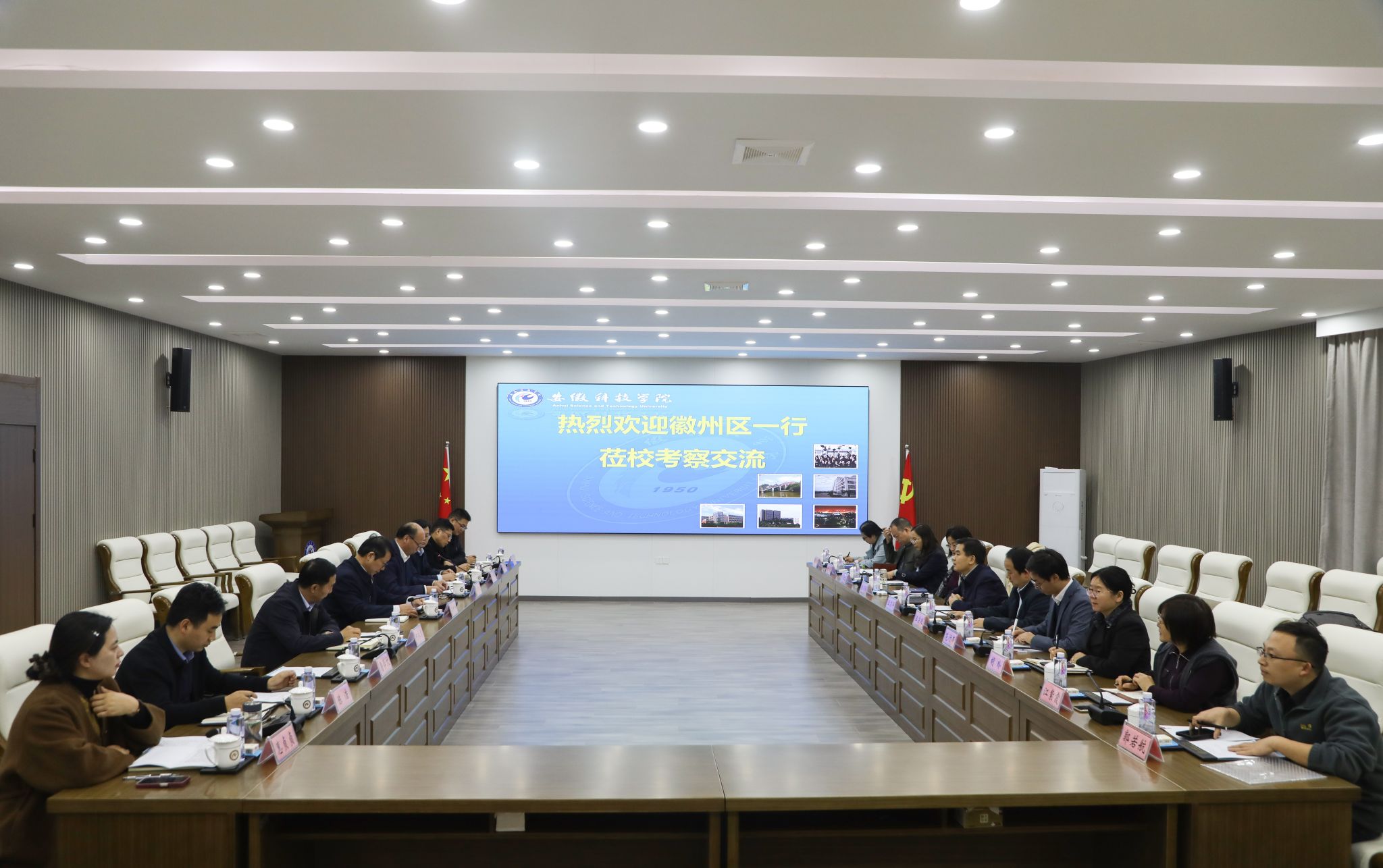11月13日,黄山市徽州区委副书记、区长王苏平率区委常委、组织部部长汪宗延,副区长程丽群、范行军一行来校考察,并就深化校地联动、推进产学研合作开展座谈交流。校党委副书记、院长李升和,党委委员、副院长王孝义出席座谈会。会议由王孝义主持。