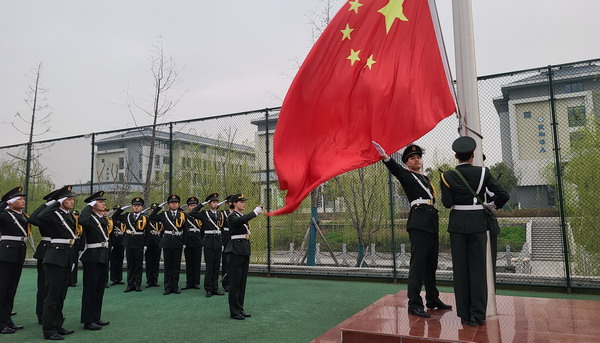 早上6:40,国旗护卫队队员伴着口令,迈着从容稳健的齐步,踏着铿锵有力的正步,伴随着国歌的音律,国旗徐徐升起。国旗护卫队队员们目光坚定,身姿挺拔,展示了国旗护卫队斗志昂扬的精神面貌;参加观礼的师生庄严肃穆,庄严的义勇军进行曲响起,五星红旗迎风飘扬,全体师生唱国歌行注目礼。 升旗仪式后在国旗下举行了经典党史朗诵,校国旗护卫队队员陈良戈深情并茂地朗诵了《百年党史》,带与会师生领略了中国共产党带领人民走向富强的百年奋斗历程,感悟了百年的成就与辉煌。