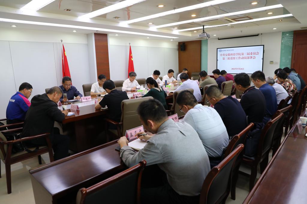 5月26日下午,中共安徽科技学院第三届委员会第三轮巡察工作动员部署会召开。校党委书记、巡察工作领导小组组长蒋德勤作动员部署讲话。会议由校党委委员、纪委书记、监察专员王强主持。学校党委巡察工作领导小组成员,党委巡察办、巡察组全体成员,党委组织部、纪委办主要负责同志,被巡察单位党政主要负责人及联络员参加了会议。