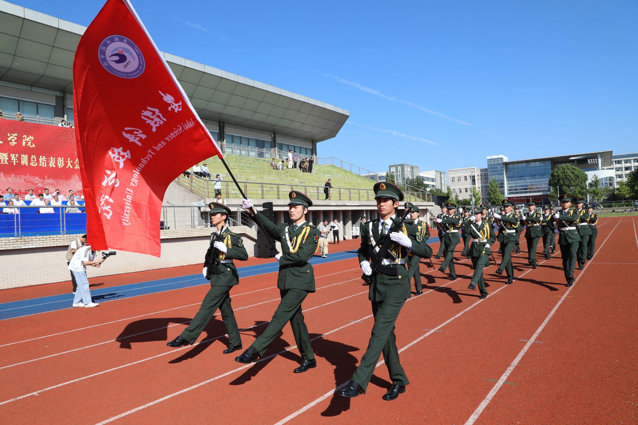 在军训成果展示中,全体军训新生身着戎装,满腔热血,军姿飒爽,气宇轩昂。在护旗方队的引领下,各连徒步方阵步履铿锵地依次通过观礼台。随后,坦克旗语、格斗术、棍术表演、捕俘拳、摆字方阵等依次展示。摆字方阵先后拼出“请党放心 强国有我”等字型,充分展示了安科学子矢志报国、挺膺担当的家国情怀,军训汇演现场高潮迭起,掌声雷动,现场师生连连喝彩。