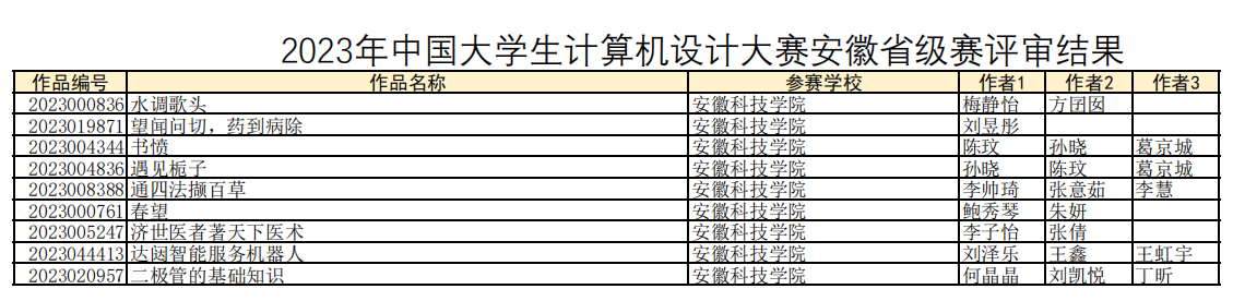 5月22日,2023年中国大学生计算机设计大赛安徽省级赛评审结果出炉,我校斩获一等奖2项、二等奖3项、三等奖3项、优胜奖1项。
