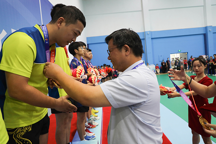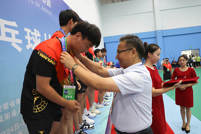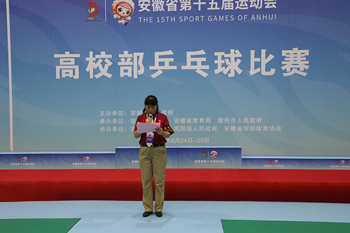 8月26日下午,历经三天的激烈角逐,安徽省第十五届运动会高校部乒乓球比赛第一阶段赛事团体比赛正式落幕。颁奖仪式在安徽科技学院凤阳校区体育馆举行。