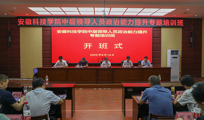 李震介绍了培训班的筹备过程、学习内容、培训形式和工作安排。他强调,广大学员要深刻认识加强干部教育培训工作的重要意义,切实增强抓好学习培训的自觉性和紧迫性,不断提高学习培训的针对性和实效性,高质量完成各项培训任务。他强调,广大学员要严格遵守培训纪律和疫情防控要求、认真学习,以扎实的学风展现安徽科技学院党员干部的良好形象。