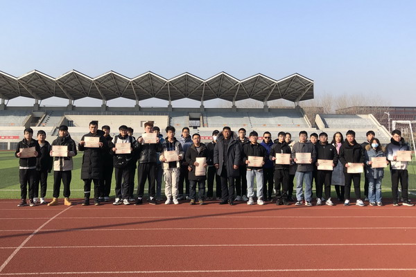 12月29日,我校在龙湖校区举行2020-2021-2学期学生课外健康跑“乐跑达人”表彰活动,体育教学部教学秘书高斌老师受邀为获奖学生颁奖并合影留念,学生处秘书石志成宣读了《关于公布学生校园课外健康跑获奖名单的通知》,龙湖校区校园课外健康跑“乐跑达人”参加活动。