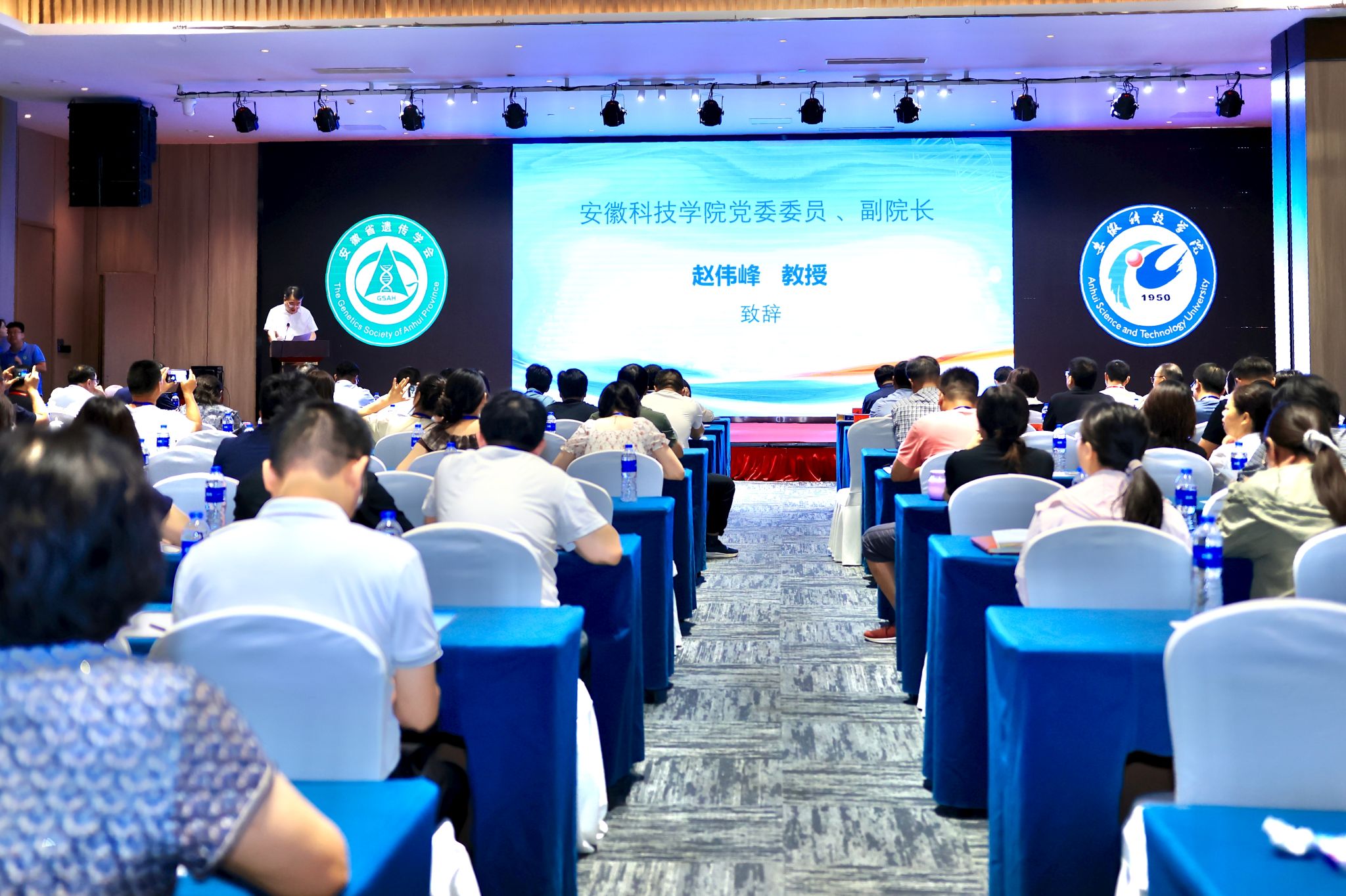 为深入贯彻落实习近平总书记关于农业科技工作的重要指示精神,促进安徽省遗传学领域的学术交流与合作,助力现代种业创新与农业高质量发展,7月23日至24日,由安徽省遗传学会、安徽科技学院农学院及生物医学与健康学院联合主办的“2025年安徽省遗传学会学术年会”在我校凤阳校区成功举办。来自全国高校、科研院所及企业界的150余位专家学者齐聚一堂,共襄盛举。校党委委员、副院长赵伟峰,安徽省科学技术协会科技创新部副部长张佳佳,安徽省遗传学会理事长蔡永萍等出席开幕式并致辞。开幕式由农学院院长崔广荣主持。