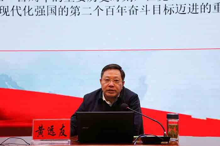12月9日下午,党委委员、副校长黄友锐在凤阳校区会议中心第二报告厅为生命与健康科学学院、食品工程学院、体育教学部教职工和研究生、本科生代表作党的十九届六中全会精神宣讲报告。
