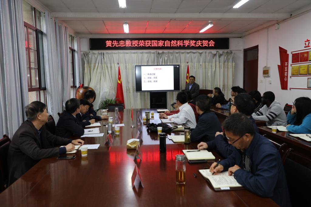 11月5日下午,农学院召开黄先忠教授荣获国家自然科学奖庆贺会,党委书记蒋德勤出席会议,国家自然科学奖二等奖获得者黄先忠,人事处处长卢星辰、科研处副处长张从宇、组织部副部长唐仁生,农学院党政班子成员、各系(中心)主任、各科研(教学)团队负责人、水稻种质创新及应用基因组学团队成员参加会议。会议由农学院院长崔广荣主持。