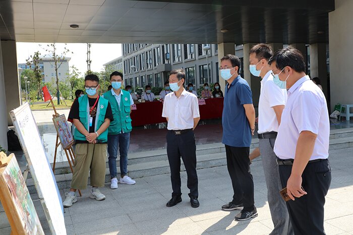 上午10时许,党委副书记、校长李震,党委委员、副校长黄远友,党委委员、纪委书记、监察专员王强,党委委员、副校长黄友锐,党委委员、副校长李升和等专程来到龙湖校区迎新现场,亲切看望慰问2021级新生及现场师生志愿者,详细了解新生报到情况,检查指导迎新工作。