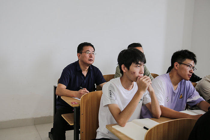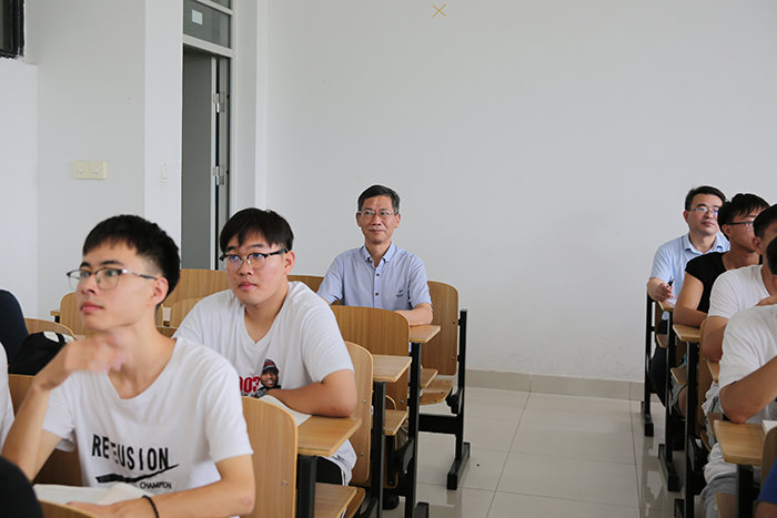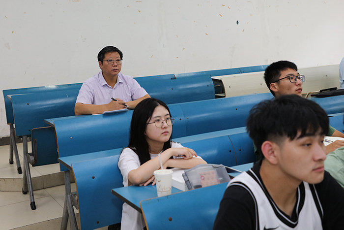 黄远友、王强、黄友锐、李升和也按照既定听课方案,分别深入龙湖校区致知楼A203教室、凤阳校区求知楼B101教室、龙湖校区致知楼A101教室、凤阳校区新知楼A104教室与学生一起听课,并利用课间与师生作交流,给予相关指导。