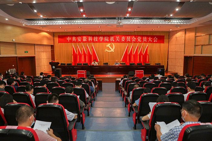 6月28日下午,中共安徽科技学院机关委员会党员大会在凤阳校区会议中心二楼报告厅隆重召开,机关党支部所有党员参加会议。会议应到党员165名,实到党员150名。会议由机关党委组织员陈明主持。