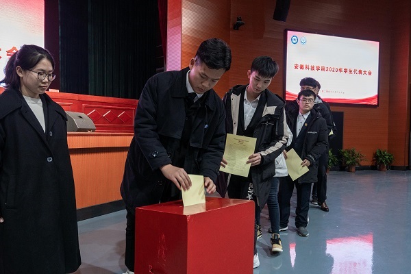 资源与环境学院学生会执行主席陈汉致开幕词。大会听取并审议通过了校学生会执行主席吴伟钰代表第十二届学生委员会作的题为《深化改革 锐意进取 全心全意服务同学 团结带领广大同学为建成现代化全国一流应用型大学贡献青春力量》的报告,修订了《安徽科技学院学生会章程》。