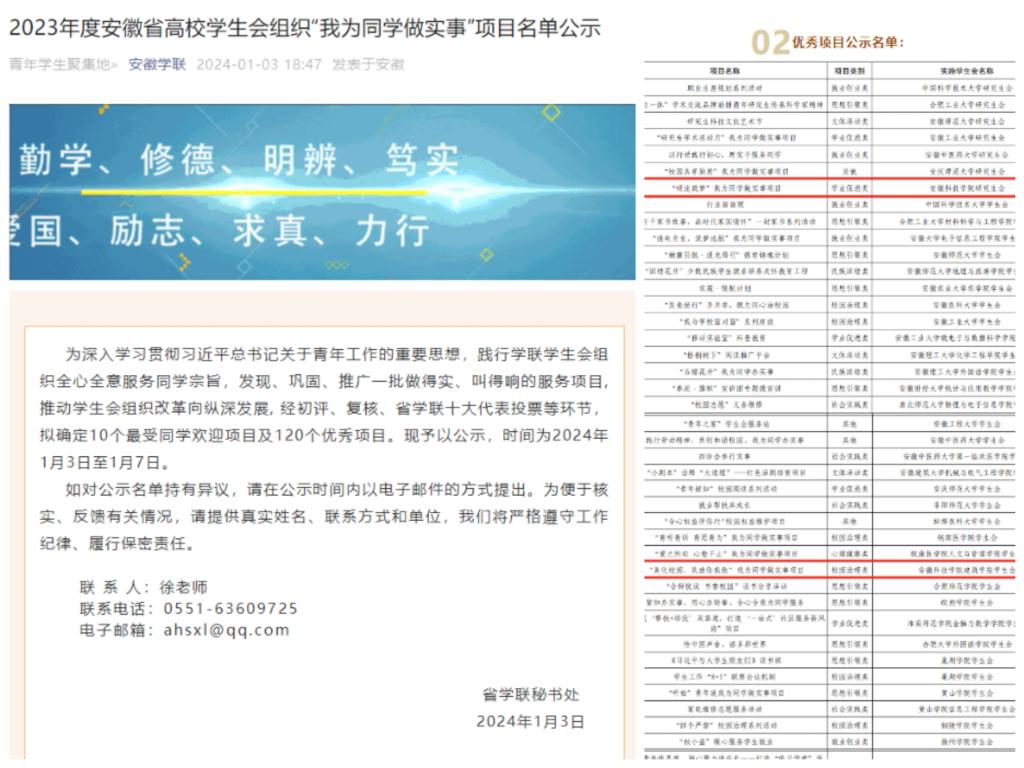 我校学生组织在2023年度安徽省高校学生会组织 “我为同学做实事”项目中斩获佳绩