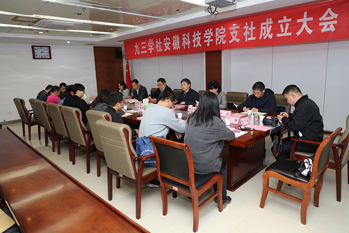 11月15日下午,九三学社安徽科技学院支社成立大会在新图书馆十楼会议室举行。校党委书记蒋德勤,蚌埠市人民政府副市长、九三学社蚌埠市委主委陈忠卫,蚌埠市委统战部常务副部长华如军,蚌埠市委统战部党派科科长靳涛,九三学社蚌埠市委专职副主委李晓林,校党委委员、统战(宣传)部长卫胜,九三学社蚌埠学院支社主委苏晓雯,九三学社蚌埠市委组宣部部长何伟,九三学社蚌埠市委办公室副主任陈梦云,校党委统战(宣传)部秘书邓艳萍等出席大会。会议由李晓林主持。