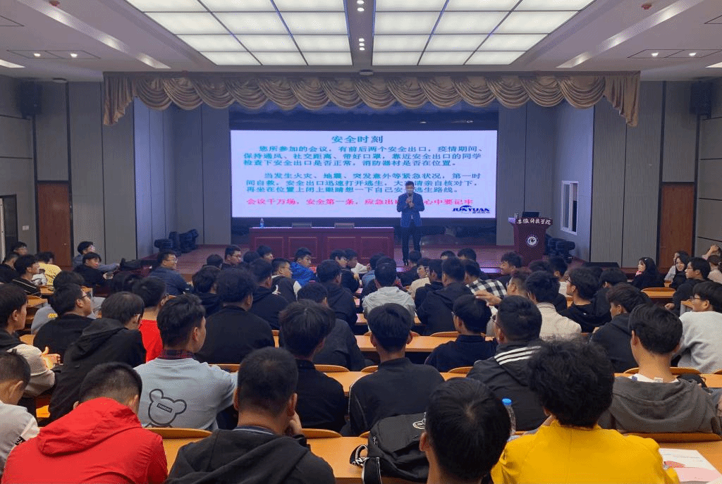 在校庆来临之际,为提升新生实验室安全意识,11月6日下午,化学与材料工程学院邀请江苏君源环保科技有限公司总经理屈俊勋开展《实验室应急安全分享与泄漏安全处置》主题报告会。会议由学院辅导员李潮升主持, 2020级部分学生参与。