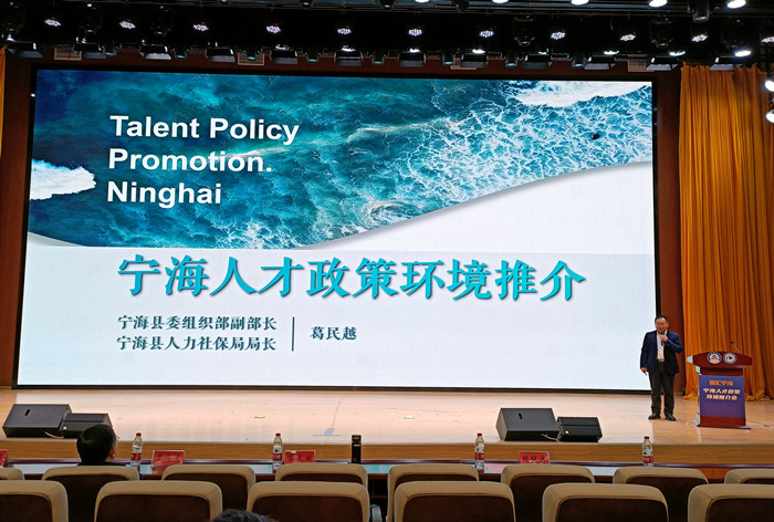 11月22日上午,宁波市宁海县“奔甬而来,智汇宁海”2023年宁海重点产业人才引育宣讲会在我校信息中心东辅楼二楼报告厅成功举办。宁海县委组织部副部长、县人力社保局党委书记、局长葛民越及宁海县重点企业代表参加宣讲会。校党委委员、副院长黄远友出席宣讲会并致辞,我校200余名学生聆听了宣讲会。