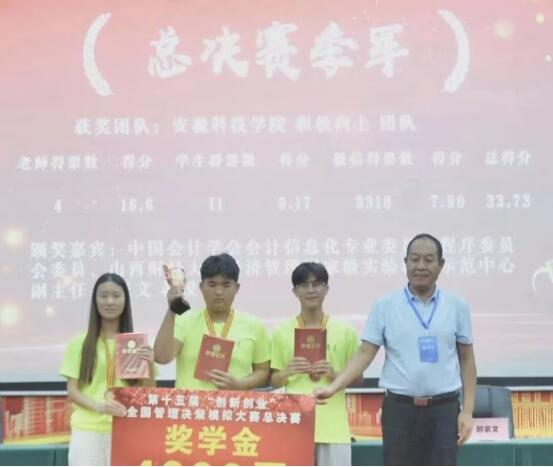 学校和学院一直高度重视并支持学生参加各类大学生学科与技能竞赛。我校学生在历届“创新创业”全国管理决策模拟大赛全国总决赛和安徽省赛中多次获得特等奖或一等奖,这次比赛展现了我校学生扎实的专业基础和较强的实践能力,也提高了学生的创新创业意识。(特约通讯员:江旭聪 摄影:杨续昌 审核:陈传万 编辑:李锦)
