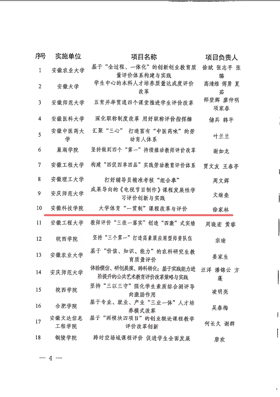 近日,安徽省教育厅公布了2022年度教育评价改革优秀案例评选结果,我校主持的“大学体育‘一贯制’课程改革与评价”案例成功入选。该项目立项于2021年11月,是安徽省教育工委立项的试点项目,旨在贯彻落实中央和我省关于深化新时代教育评价改革的总体部署。立项以来,学校高度重视。2021年12月,学校成立了由分管院长任组长的试点项目实施领导小组,强化组织保障,并划拨了专项课题经费,确保改革有序推进。
