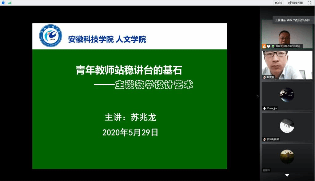 为提升学校青年教师业务素质能力,强化业务学习,优化课堂教学设计,提高课堂教学质量,5月29日下午,学校教师能力发展中心与教学督导办公室通过腾讯会议平台联合举办了主题为“青年教师站稳讲台的基石——主谈教学设计艺术”的专题讲座。校教学督导员苏兆龙副教授受邀担任主讲,来自各教学院(部)的青年教师和部分教学督导员参加讲座。讲座由教学督导办公室主任程斌主持。