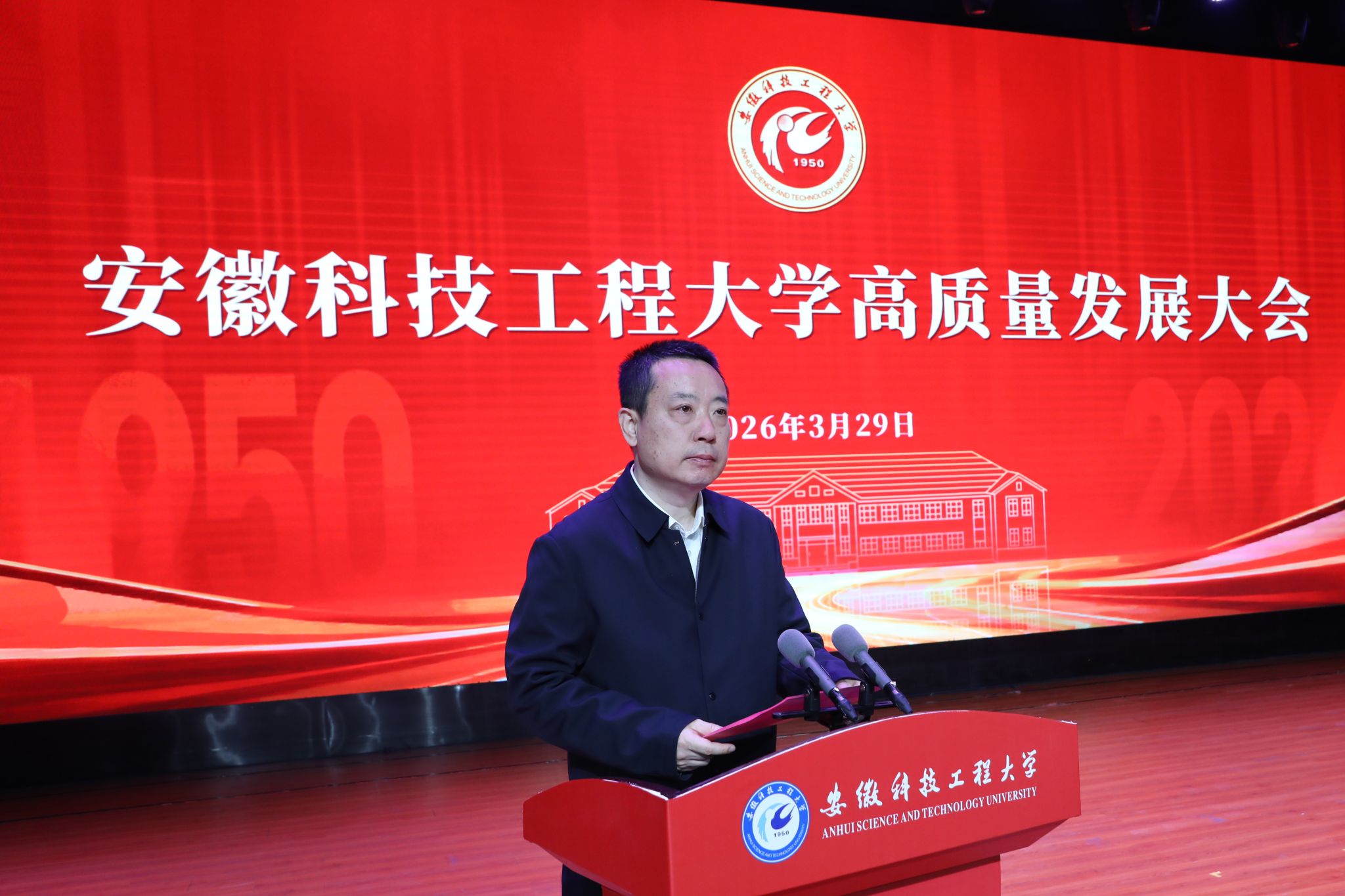 春风浩荡满目新,扬帆奋进正当时。3月29日上午,学校高质量发展大会在凤阳校区成功召开。中国工程院院士彭寿,省领导,省教育厅、省科技厅、省农业农村厅负责同志,滁州市、蚌埠市、凤阳县负责同志,安徽农业大学、安徽省农科院等兄弟单位和科研院所代表,校级老领导,校友代表,学校师生代表等参加大会。大会由校党委副书记、院长李升和主持。