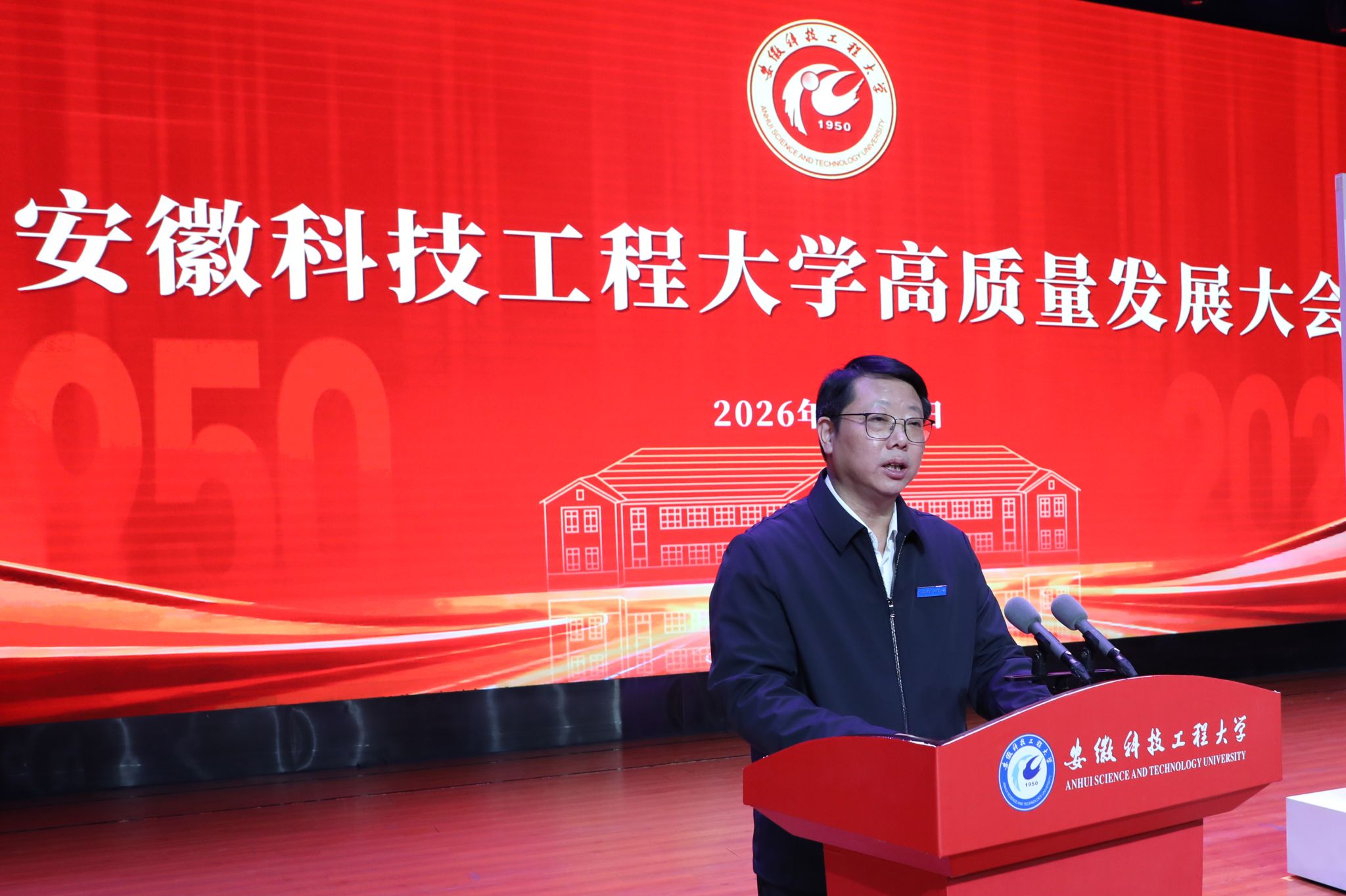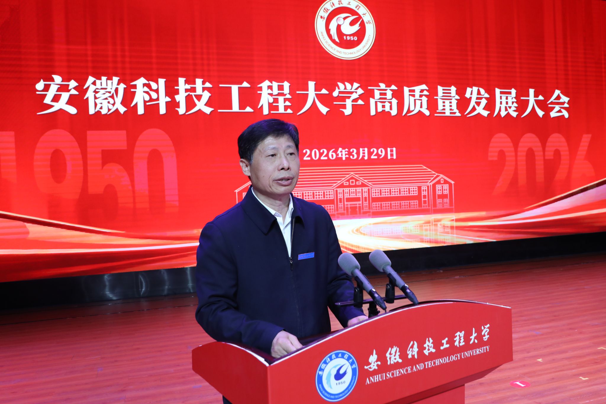 滁州市委副书记、市长胡春华在讲话中代表滁州市委、市政府向学校成功更名表示诚挚祝贺。他指出,安徽科技工程大学自1950年建校以来始终扎根江淮大地,为地方经济社会发展作出积极贡献。近年来,学校锚定现代化全国一流应用型大学目标,顺利实现从学院到大学的跨越,是学校发展史上的里程碑,也让滁州人民倍感自豪。他强调,学校与滁州同频共振、共生共荣,“十五五”时期校地合作前景广阔。希望学校深化产教融合,推动创新成果就地转化、优秀人才留皖兴业,共同书写双向赋能新篇章。他表示,滁州市将一如既往支持学校发展,为现代化新滁州建设赋能添彩。