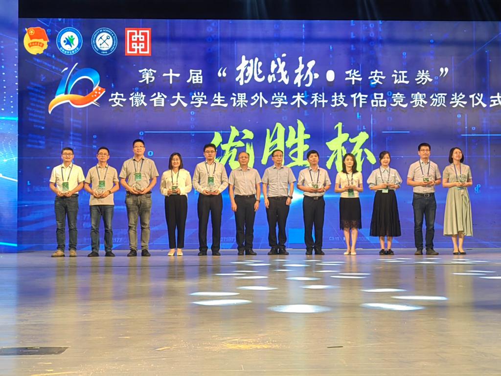 挑战青春,科创未来。6月11日下午,由团省委、省教育厅、省科协、省社科院、省学联共同举办的第十届“挑战杯 华安证券”安徽省大学生课外学术科技作品竞赛在淮南艺术文化中心落下帷幕。我校获得一等奖2项,二等奖8项,并在该项赛事中荣膺“优胜杯”。