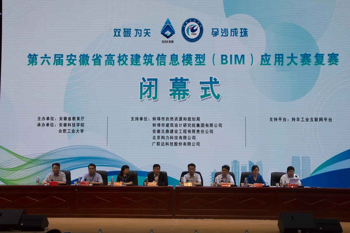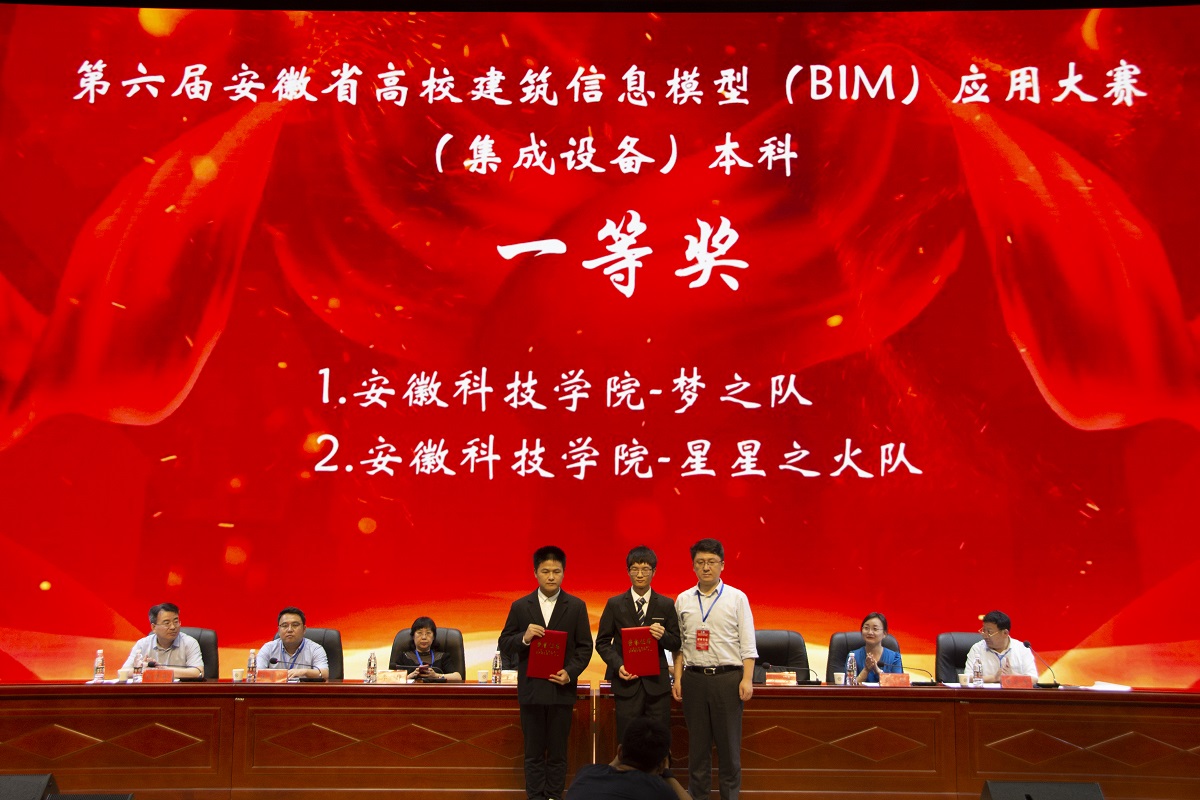 5月28日上午,由安徽省教育厅、安徽省大学生结构设计竞赛组织委员会主办,安徽科技学院、合肥工业大学承办的第六届安徽省高校建筑信息模型(BIM)应用大赛在我校龙湖校区图书馆东辅楼报告厅圆满闭幕。安徽省高校建筑信息模型(BIM)应用大赛组委会秘书长、合肥工业大学土木与水利工程学院院长王静峰,教育部高等学校土木工程教学指导分委员会委员、华南理工大学教授季静,安徽省住建厅标准定额处处长李长青,南京工业大学土木工程学院院长方海,中国矿业大学力学与土木工程学院副院长张营营,安徽科技学院教务处处长赵伟峰出席了闭幕式。仪式由建筑学院院长张远兵主持。