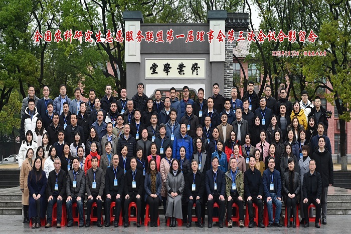 2月12日,由中国学位与研究生教育学会农林学科工作委员会主办,湖南农业大学、安徽科技学院和吉首大学联合承办的全国农科研究生志愿服务联盟(以下简称“联盟”)第一届理事会第三次会议在湖南农业大学修业讲堂召开。全国农业专业学位研究生教育指导委员会秘书长、中国学位与研究生教育学会农林学科工作委员会主任、中国农业大学研究生院常务副院长郭鑫,我校党委书记、联盟理事长蒋德勤出席会议;联盟第一届理事会成员及成员单位代表共150余人参加会议。我校党委委员、副校长、联盟秘书长李升和,研究生处处长张春雨、副处长靳二辉参加会议。