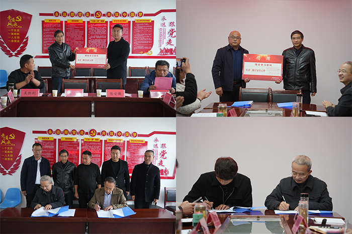 会上举行了安徽科技学院向黄湾乡吴窑村捐赠理论学习资料仪式;机关党委组织员陈明与龚争签订了《安徽科技学院机关党委与凤阳县黄湾乡吴窑村党总支结对共建备忘录》。对接会后,与会人员还饶有兴致地参观了吴窑村萝卜种植基地。