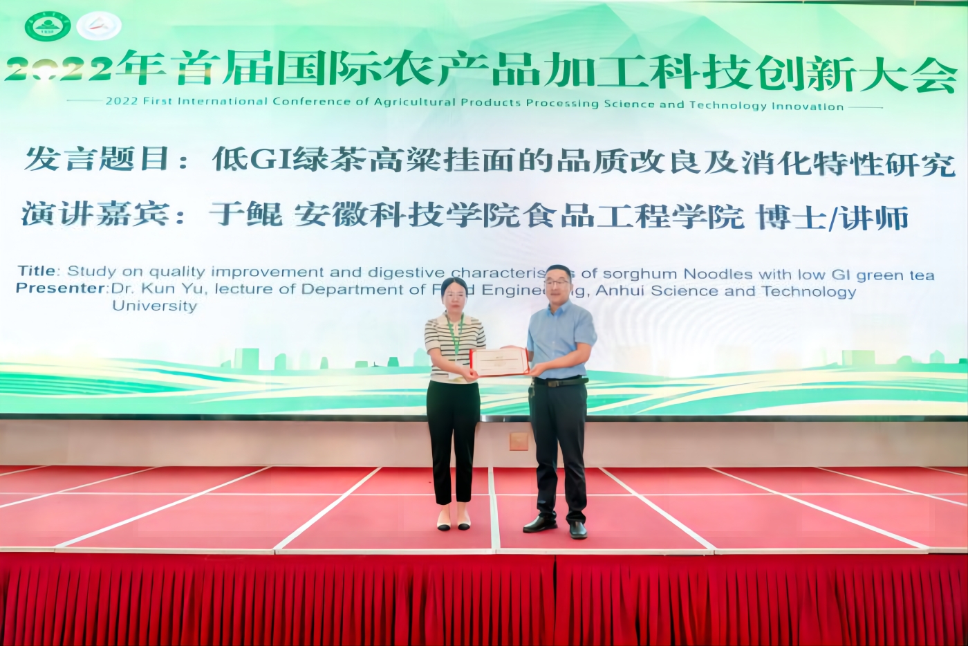 为推进农产品加工科技创新,促进成果转化与科技合作,推动农产品加工产业健康可持续发展,由安徽农业大学主办,合肥工业大学、安徽科技学院、滁州学院、皖西学院等单位承办的“2022年首届国际农产品加工科技创新大会”于2022年9月22-24日在安徽合肥召开,由中国工程院院士朱蓓薇教授和谢明勇教授共同担任大会主席。本次大会就国内外农产品贮藏加工技术的研究进展与动态,新成果展示与全产业链对接等进行了深入交流,共谋农产品加工业产业大计。我校党委委员、副院长李升和带领食品工程学院院长杜传来、副院长翟立公和院青年教师陈春旭、杨丽萍、卫兰兰、于鲲、魏照辉及6名研究生应邀参会。