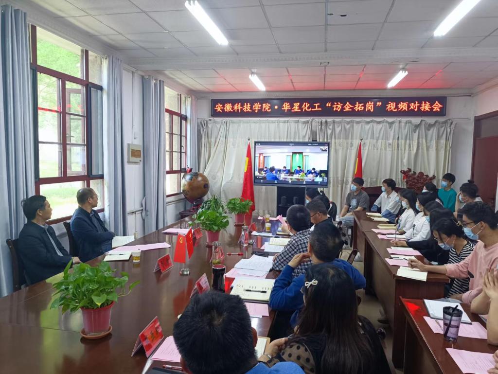 为贯彻落实教育部、省委省政府关于高校毕业生就业工作的决策部署,实现人才培养与就业岗位深度对接,助力毕业生疫情防控常态化背景下高质量就业,5月3日, 农学院在学院会议室举办“访企拓岗”视频对接会。校党委副书记、院长李震出席,招生与就业工作处副处长何晓冬,农学院党政领导、植物保护系毕亚玲等教师代表和毕业生代表参加会议,参会企业安徽华星化工有限公司党委书记、总经理颜泽彬,常务副总经理李文明以及相关职能部门负责人、就职于华星化工的我校校友代表等在和县、合肥等地视频出席会议。