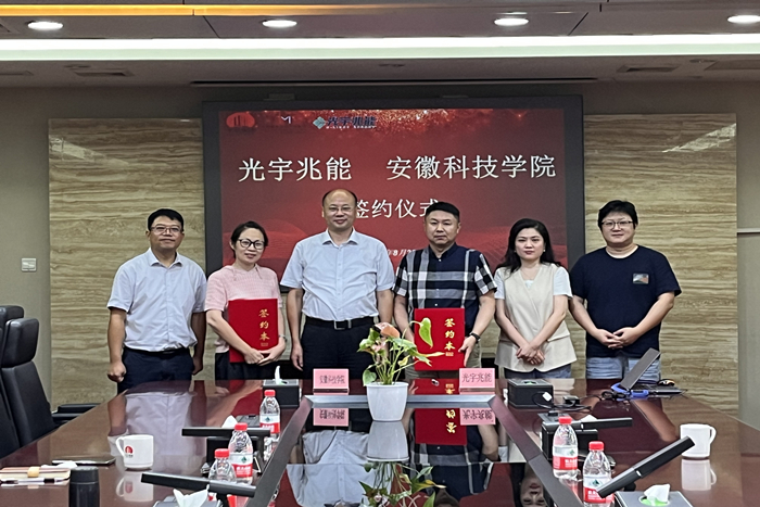 座谈会上,双方签署了合作协议。胡浩校友拟出资设立“安徽科技学院光宇兆能基金”,用于支持学校人才培养、学科专业建设等事业发展。