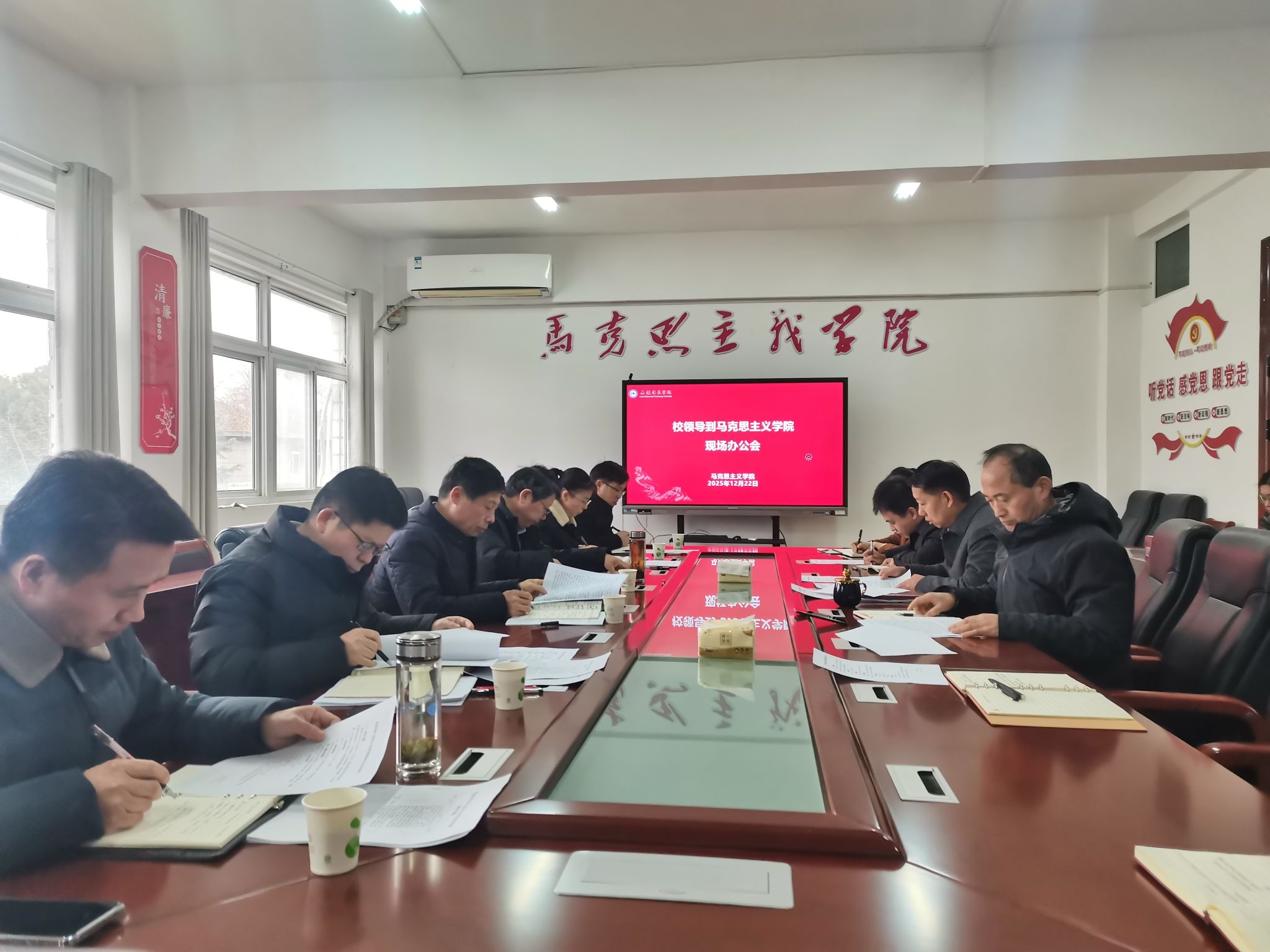 为深入贯彻落实习近平总书记对高校思政课建设重要指示精神,推动马克思主义学院高质量内涵式发展,12月22日上午,校党委书记时伟,党委副书记、院长李升和深入马克思主义学院,在学知楼326会议室召开现场办公会。学校党委教师工作部、教务处、财务处和国资处等部门主要负责人,马克思主义学院党政负责同志和办公室人员参加会议。