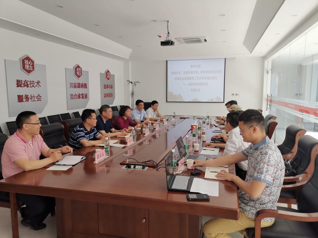 5月23日,由安徽科技学院化学与材料工程学院牵头承担的安徽省高校协同创新项目“超薄压延玻璃成型工艺及装备理论研究”开题汇报会在蚌埠凯盛工程技术有限公司三楼会议室召开。会议邀请了安徽大学发规处兼科研处处长周虹屏教授、蚌埠凯盛工程技术有限公司总经理叶坤教授级高工、蚌埠凯盛工程技术有限公司总工程师夏鹏华教授级高工、蚌埠学院王传虎教授、安徽科技学院科研处副处长鲍方印教授、安徽科技学院财务处副处长王伟高级会计师担任论证专家(含一名财务专家)。周虹屏担任专家组组长并主持会议。化学与材料工程学院党总支书记王明清、院长俞浩教授和超薄压延玻璃成型工艺及装备理论研究项目组骨干成员参加会议。