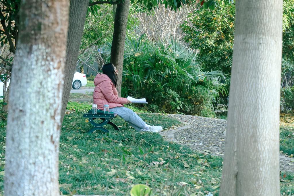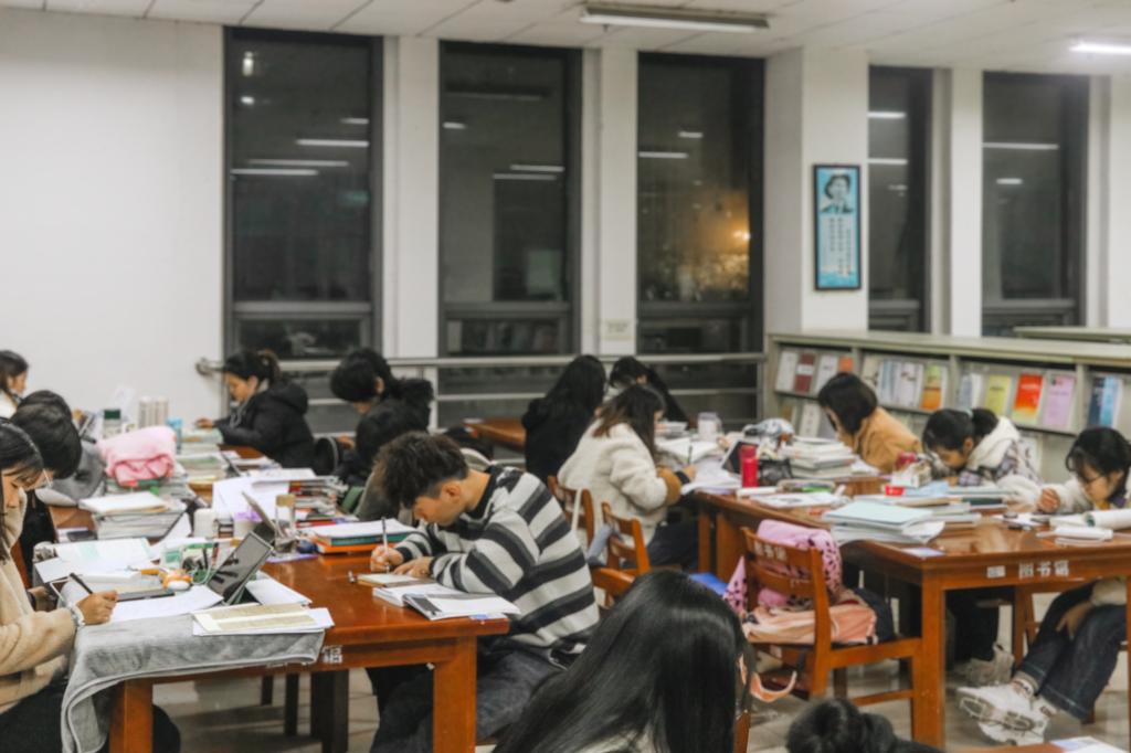落叶纷飞,修竹在后。那一个个埋头深入学海的考研学子,听不见行人的脚步声和鸟儿的嘻笑声,只听见内心斗志昂扬的呐喊声!