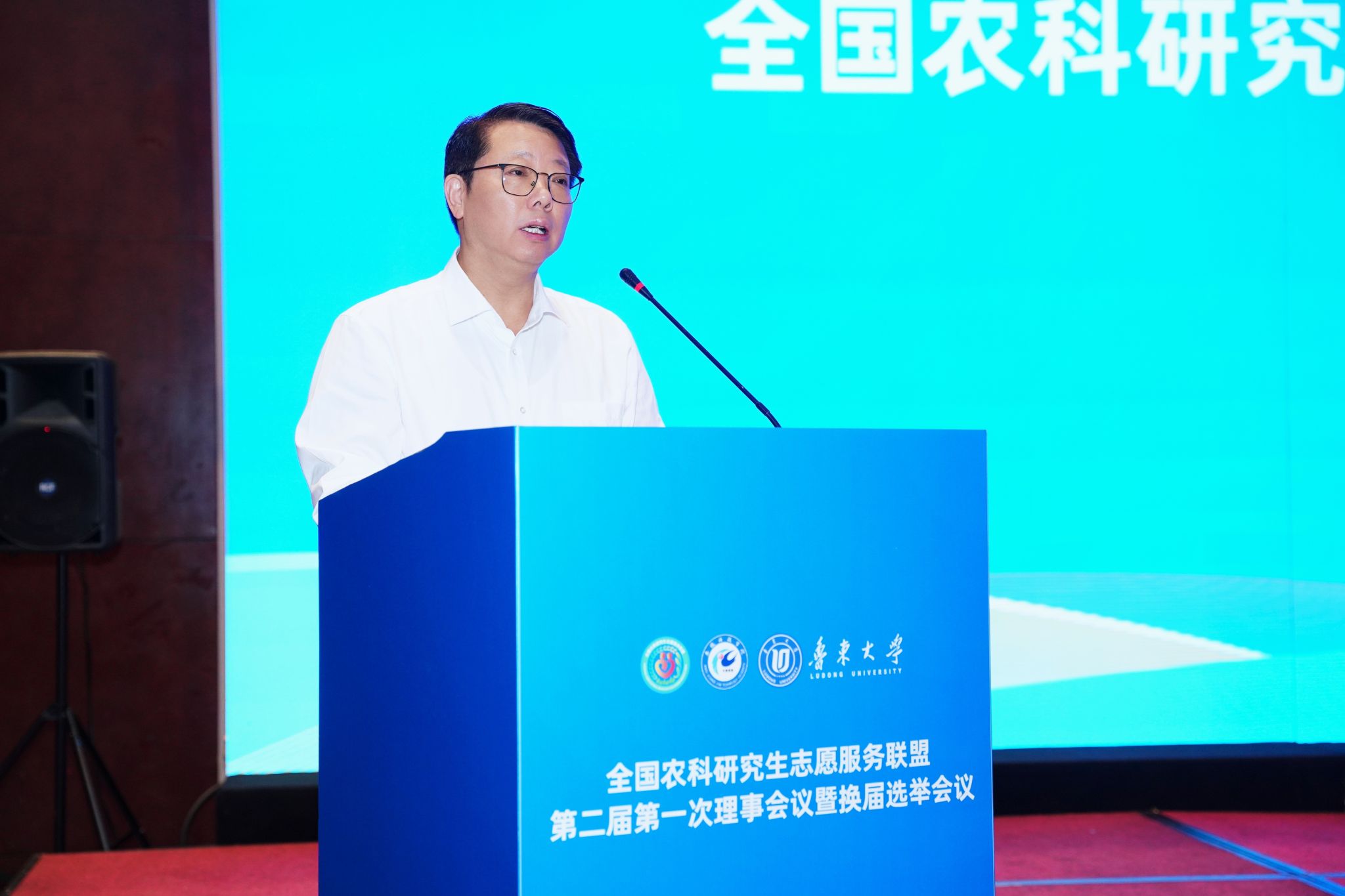李升和代表联盟第一届理事会作工作报告。他指出,联盟自成立以来,始终以“志愿服务助力乡村振兴,青年成长开创美好未来”为宗旨,为农科研究生投身“三农”事业搭建了坚实平台,客观剖析发展中的不足,为新一届理事会工作提供了重要参考。他在就职发言中承诺,将带领新一届理事会坚守联盟初心,通过整合资源、创新举措,推动志愿服务工作提质增效。4位轮值主席依次进行了表态发言,分享对联盟发展的规划与担当。鲁东大学研究生院院长、轮值主席亓朋在大会总结中强调,本次会议既是规范有序的换届大会,更是凝聚共识、谋划未来的动员大会,为联盟下一步发展奠定了坚实基础。