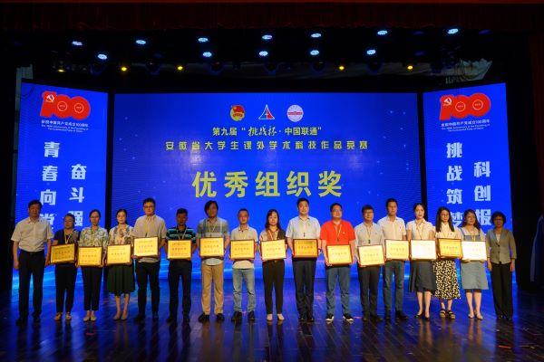 挑战筑梦,科创报国;以赛促学,追求卓越。 6 月 20 日至 21 日,由团省委、省教育厅、省科协、省社科院、省学联共同主办,安庆师范大学承办的第九届“挑战杯 中国联通”安徽省大学生课外学术科技作品竞赛交流营暨颁奖仪式在安庆师范大学龙山校区隆重举行。我校获奖团队师生代表参加活动。