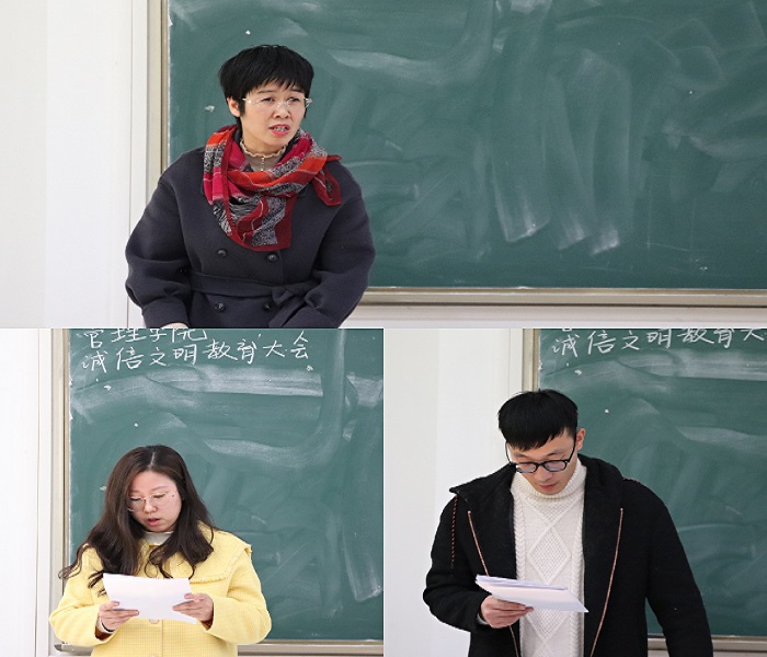 会上,黄斐宣读了《管理学院二○二一级新生“诚信 文明” 主题教育活动实施方案》,活动方案明确规定了组织领导、活动目标、实施步骤和具体措施。