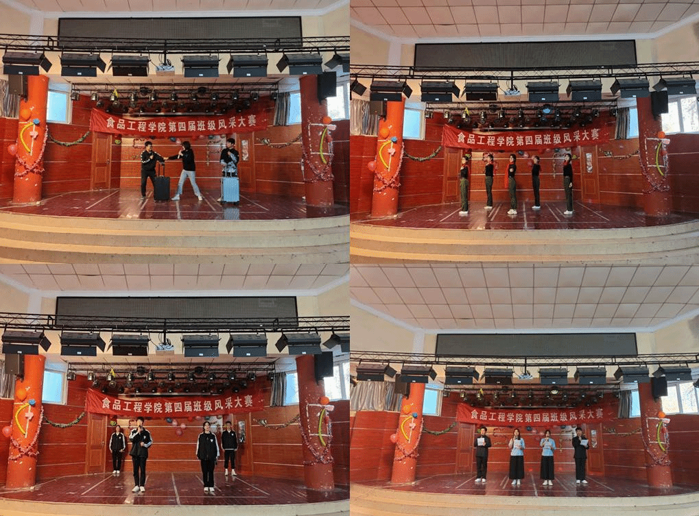 本届班级风采大赛,由各班级自选自排节目,主题突出,形式不限,有相声、小品、情景剧、朗诵、舞蹈等多种类型,学生们在舞台上尽情发挥才艺本领,以饱满的热情表演,展现班级风采和个人魅力。食品科学与工程213班同学们带来舞蹈《绒花》,舞姿优美动人,表达世间的美好与芬芳;食品质量与安全211班的朗诵《我看见》,慷慨激昂又感人肺腑,表达了对抗击疫情的白衣天使的崇高敬意和对祖国深沉的热爱;食品科学与工程211班的情景剧《恰同学少年》,以多幕剧的形式,展现出青年胸怀祖国、砥砺奋斗的故事。一系列精彩而又富有意义的节目以多种形式接连上演,精彩的演出获得台下观众阵阵掌声。