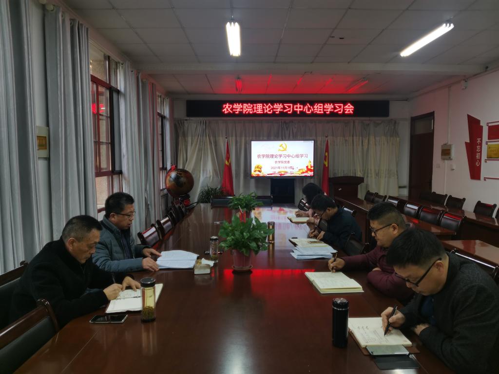 11月16日下午,农学院召开理论学习中心组学习会议,学习贯彻中国共产党安徽省第十一次代表大会精神。农学院理论学习中心组成员参加会议。会议由农学院党委书记何世潮主持。